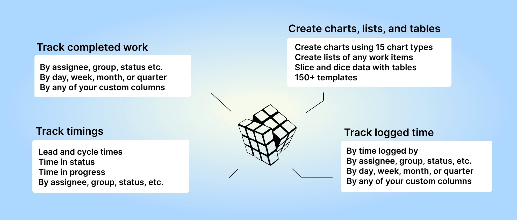 You can create charts based on time tracking data in the same way you create charts based on item data. You have all the same grouping and filtering options available.
