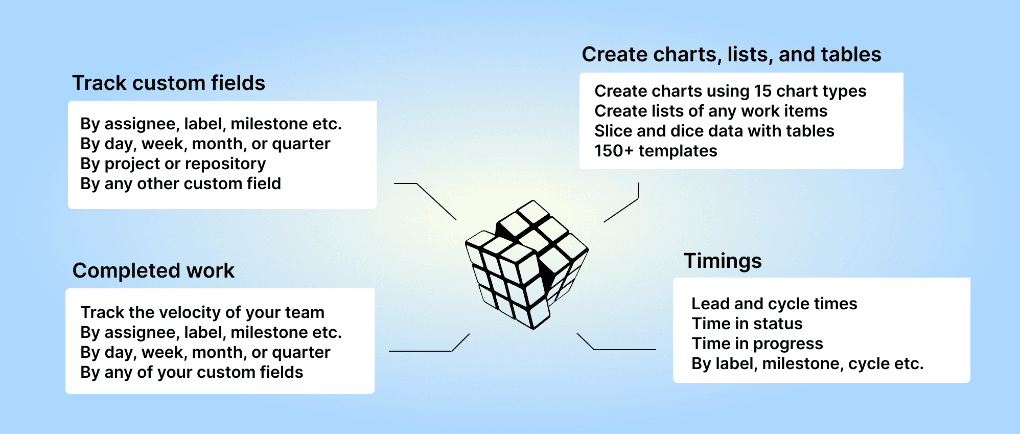 With the charts that support grouping, you can also group data by item type. This can be helpful if you want to track the number of issues and pull requests in your projects: