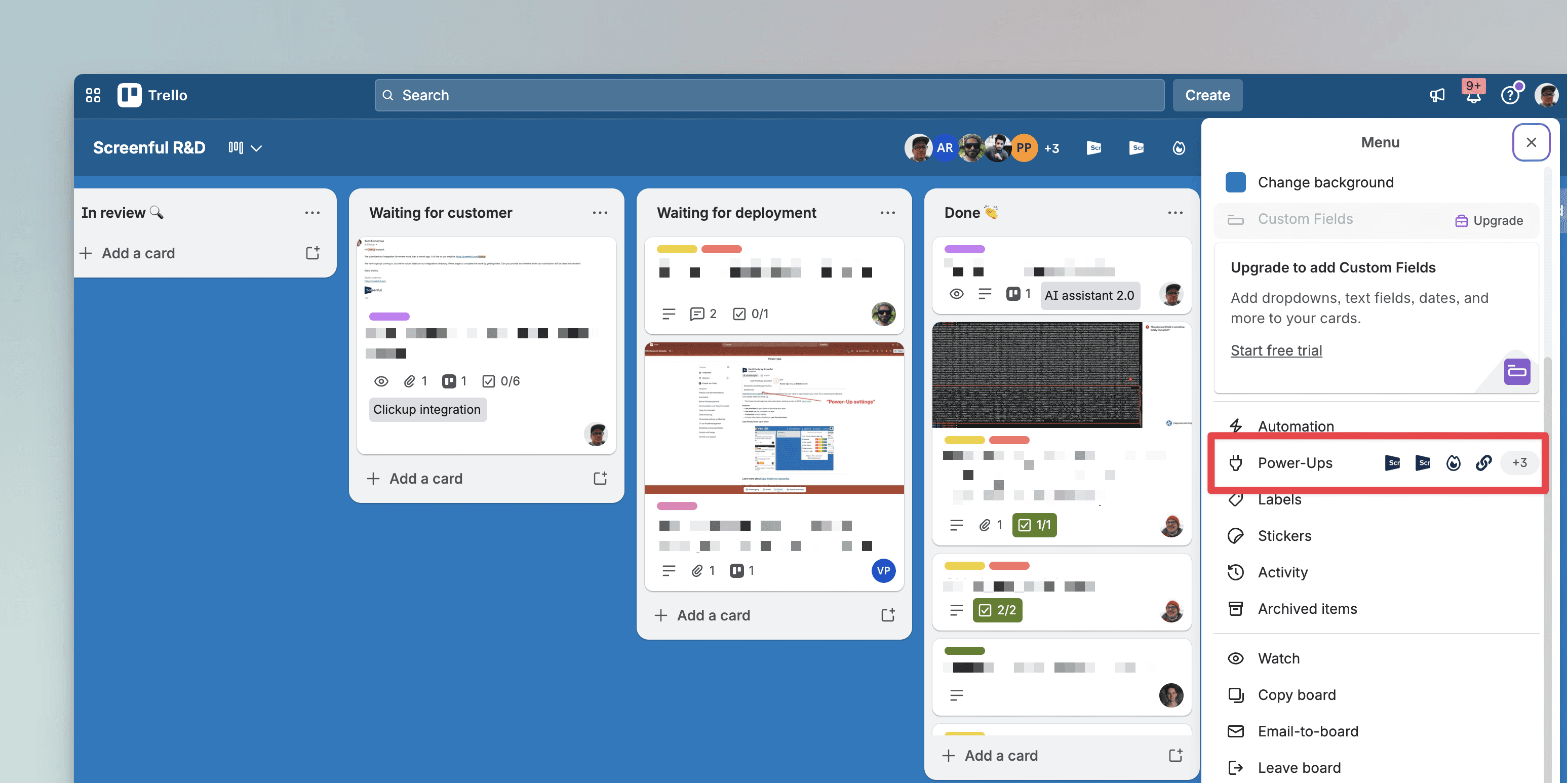 1) Select Power-Ups from Trello's main menu: