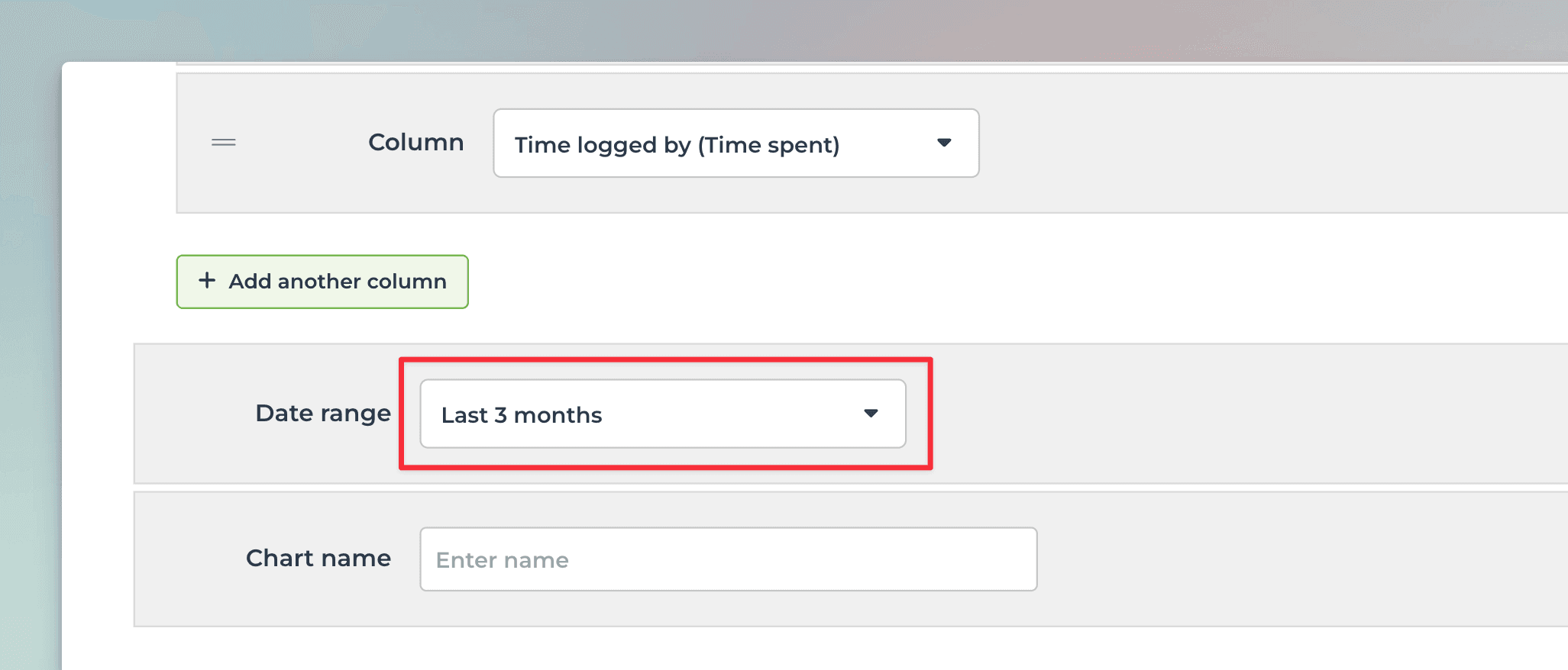 When you select a Time tracking column from the menu, a date range menu appears:
