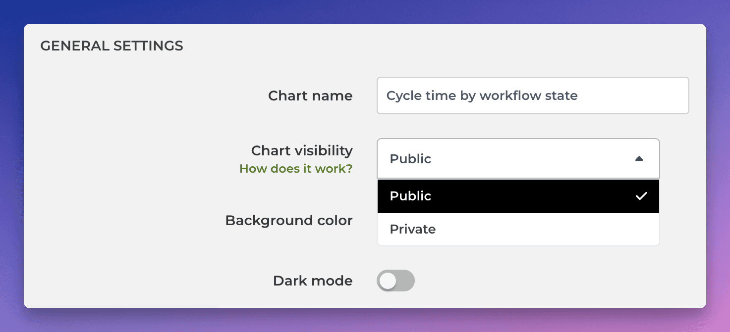 Adjusting chart visibility (public / private)