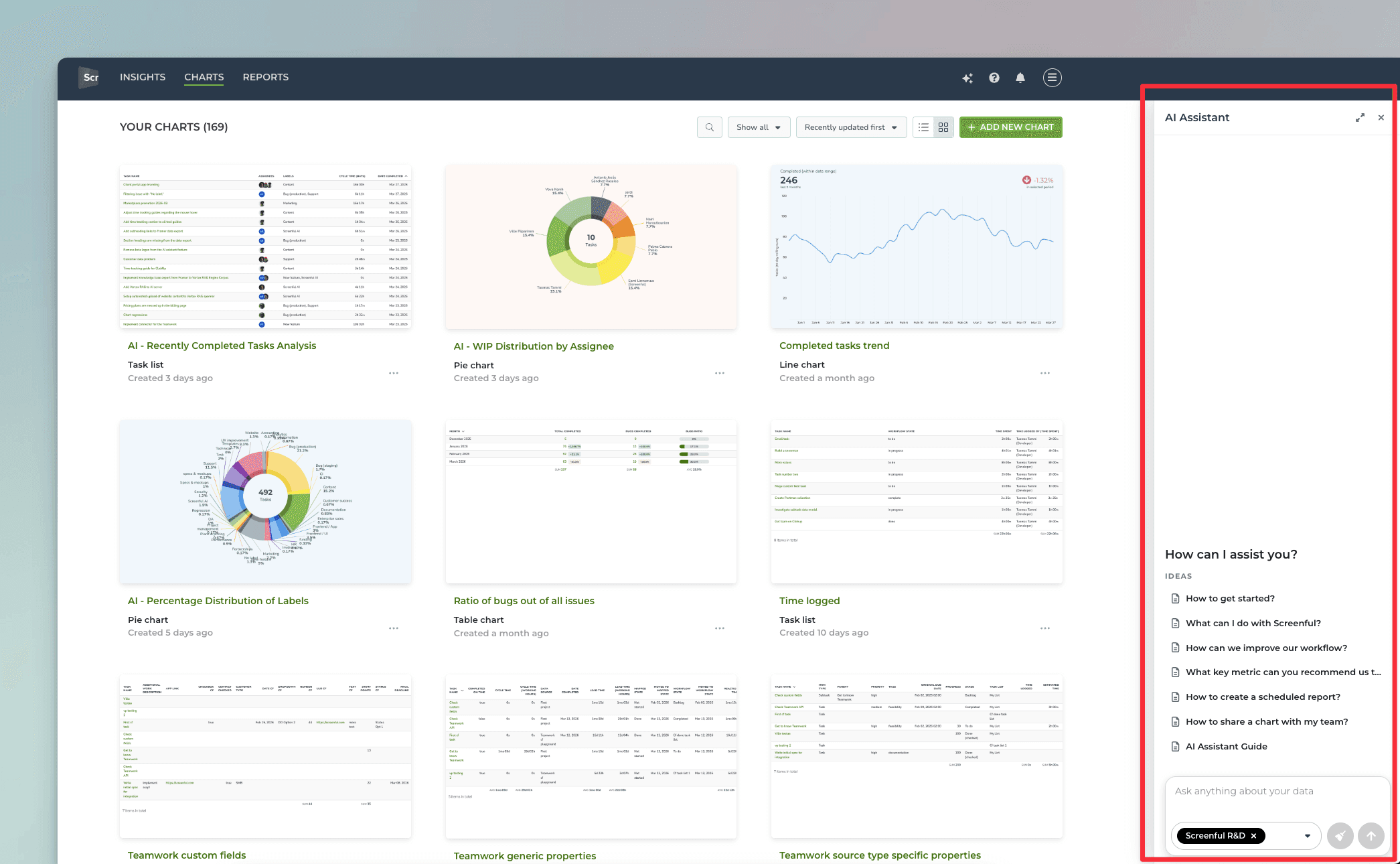 Our AI assistant has been trained with our knowledge base. That means it knows more about Screenful than almost any human. You can ask questions about Screenful features, managing accounts, data integrations, subscriptions, and basically anything that is related to Screenful. Here are some sample questions: