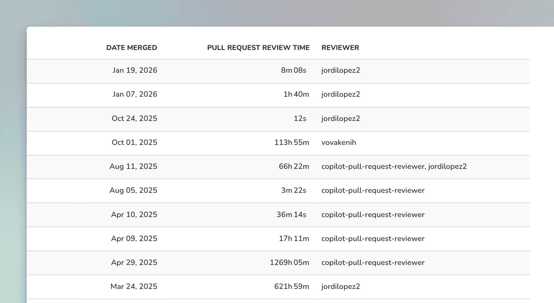 Track pull request review times