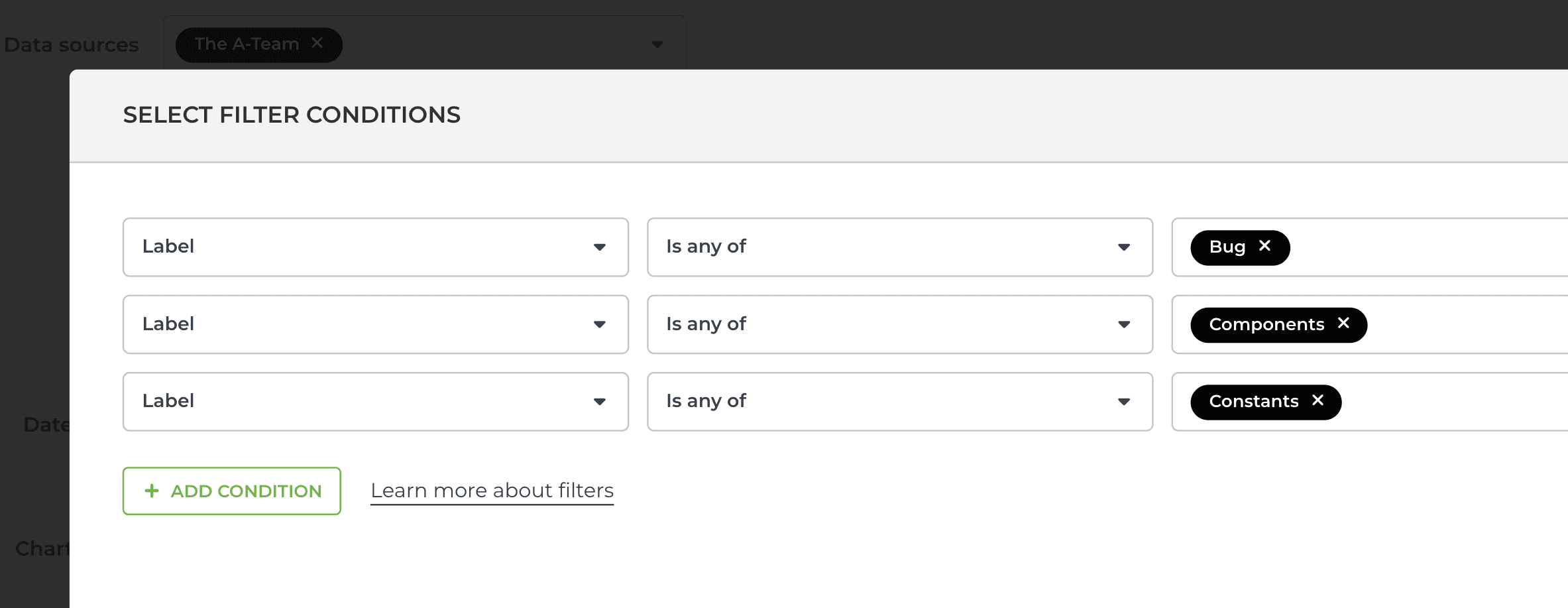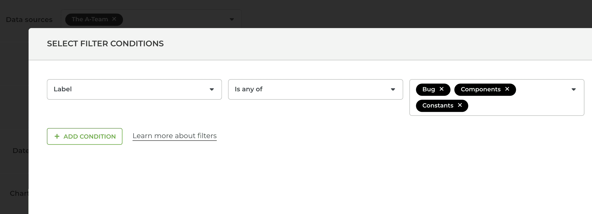 You can also filter by exact match using is equal to or is not equal to: